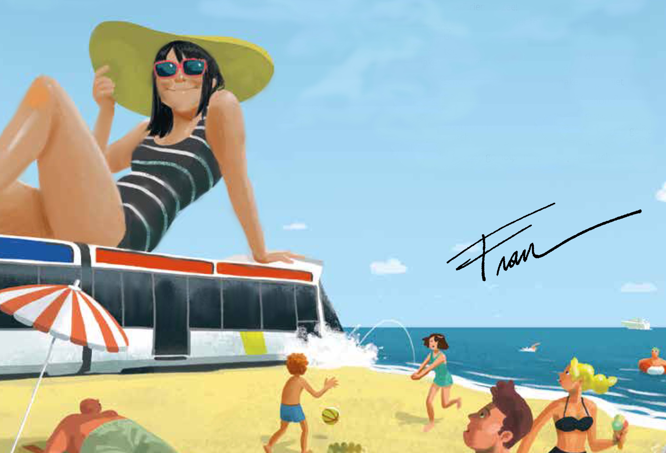 Sinds enkele maanden mag ik de op-ed verzorgen in ‘Tussen de lijnen’, het blad van De Lijn dat enkele jaren geleden nog uitgeroepen werd tot beste personeelsblad van Vlaanderen. Cursiefjesgewijs prik ik er met een vrolijke knipoog in rariteiten, onvolkomenheden en inconsequenties, en verword ik tot een cartoonfiguurtje. En ja, de verhaaltjes zijn steeds ‘gebaseerd op echte feiten’ maar dan karikaturaal bijgekleurd en ingeknipt om netjes in de formaat en de tekening te passen. Hieronder vind je de zomerinzending, die in augustus in het blad verschijnt. Moge het nu beginnen zomeren!