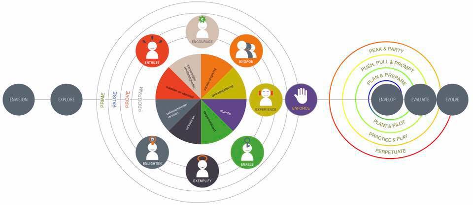 Hoe we dat gaan bereiken? Door nóg meer kennis over gedragsinzichten te delen en te zorgen dat het zich als een soort olievlek verspreidt. Een organisatie is gedragsminded als vrijwel iedereen in de organisatie zichzelf op regelmatige basis tenminste afvraagt welke aannames over gedrag er gemaakt worden, of gedrag op dat moment genoeg meegenomen worden en zo niet, hoe de juiste gedragsinzichten betrokken kunnen worden.