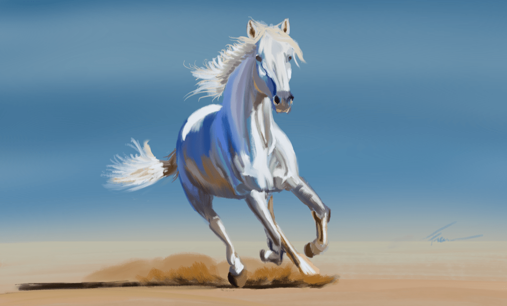 En nu, nog eens zoveel jaren later maakte ik een paar schilderijtjes. Je ziet ze hierboven. Zomaar, dacht ik. Ik haalde mijn inspiratie gewoon bij wat mooie prenten. Dacht ik. Ik postte de schilderijen online en toen reageerde mijn moeder: “Als herinnering aan je witte paardje van weleer Fran?” En plots waren de schilderijen geen gewone vingeroefeningen meer. Ze herleidden me in een tel weer tot dat paardenmeisje in Borzee. Dat paardenjongetje in Borzee. Tot een wensdromende hummel met 100 Belgische Frank.