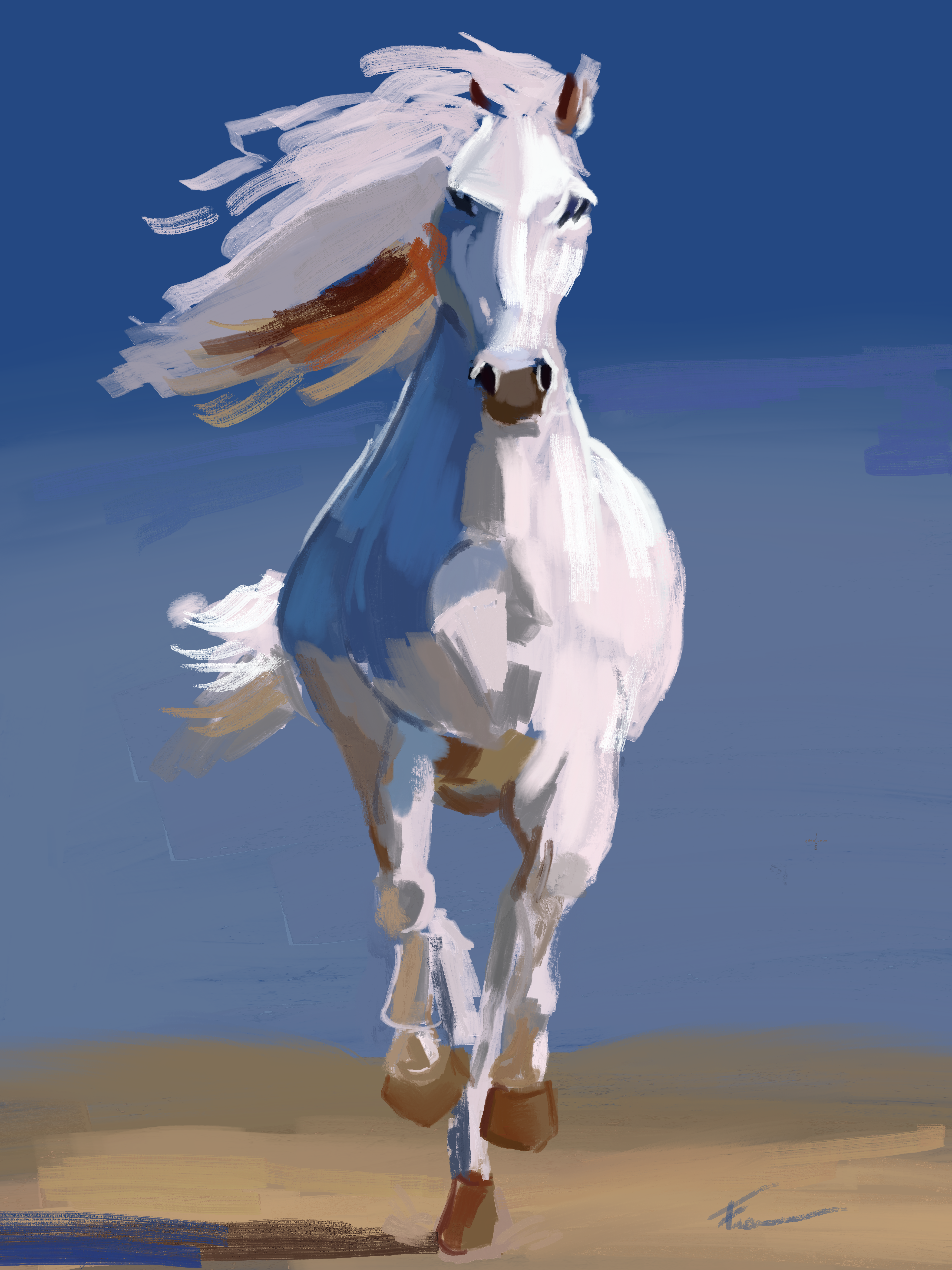 En nu, nog eens zoveel jaren later maakte ik een paar schilderijtjes. Je ziet ze hierboven. Zomaar, dacht ik. Ik haalde mijn inspiratie gewoon bij wat mooie prenten. Dacht ik. Ik postte de schilderijen online en toen reageerde mijn moeder: “Als herinnering aan je witte paardje van weleer Fran?” En plots waren de schilderijen geen gewone vingeroefeningen meer. Ze herleidden me in een tel weer tot dat paardenmeisje in Borzee. Dat paardenjongetje in Borzee. Tot een wensdromende hummel met 100 Belgische Frank.